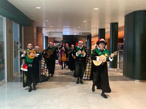 Previamente, los tunos realizaron un recorrido por la planta baja del Hospital, despertando el interés de profesionales, pacientes y visitantes.
