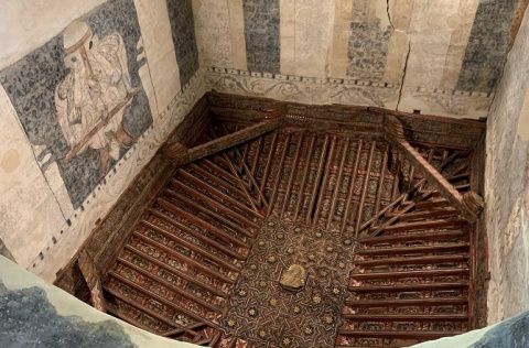 Esta puerta mudéjar está datada del siglo XIV y actualmente presenta importantes desperfectos presúntamente por el impacto de un vehículo de gran tamaño.