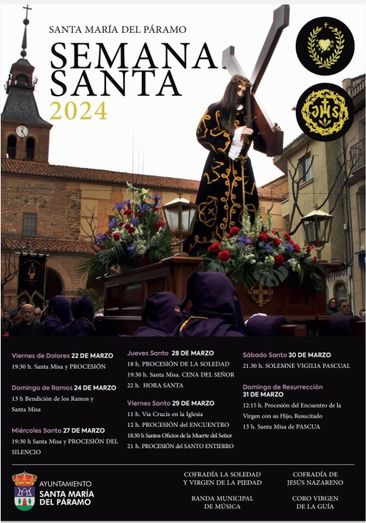 Santa María del Páramo ha presentado su programa oficial de procesiones para la Semana Santa. Como cada año la parroquia junto con las cofradías locales se ha reunido para organizar y celebrar la Semana Santa de una manera especial en Santa María del Páramo.