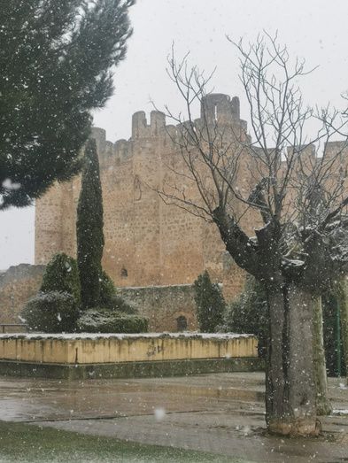 Hace una hora la nevada era más intensa, ahora (11;19 horas) nieva con menos intensidad por lo que posiblemente la estampa en blanco sea efímera.