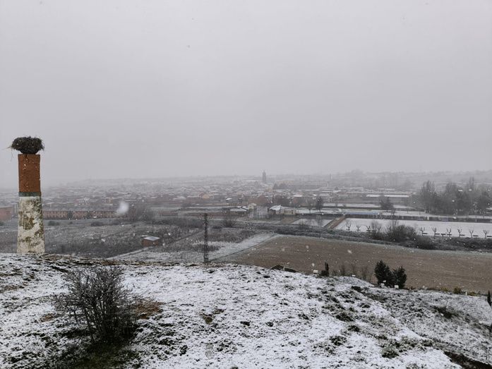 Así de bonito ha lucido esta mañana Villamañán desde el Cuesto.