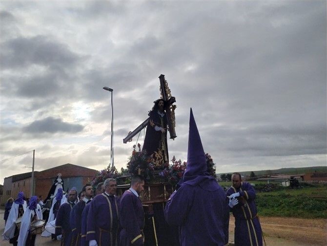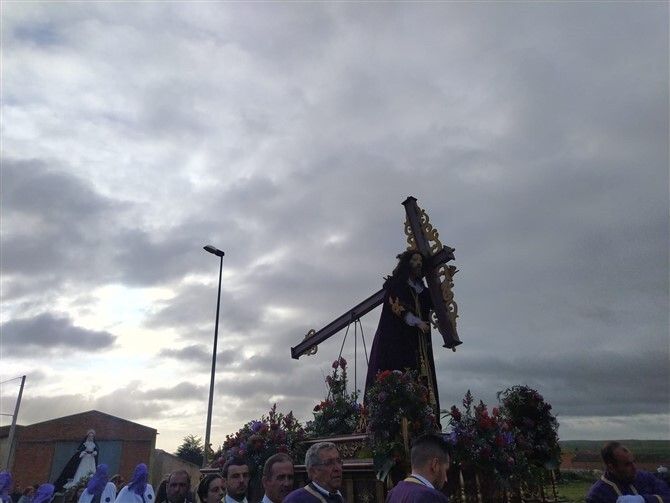El mal tiempo concedió una tregua para la celebración de esta procesión que pudo llevarse a cabo, sin incidentes climáticos, en un Jueves Santo que marcó toda la provincia.De hecho, en Valderas no hubo tanta suerte por la noche con la procesión penitencial Oración de Jesús en el Huerto organizada por la cofradía de la Vera Cruz.