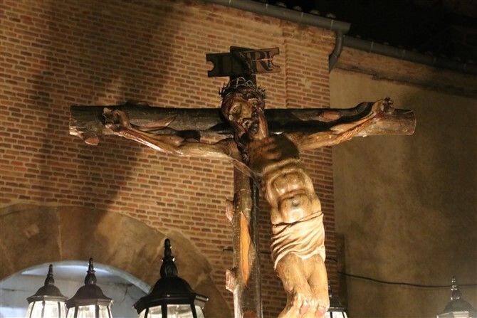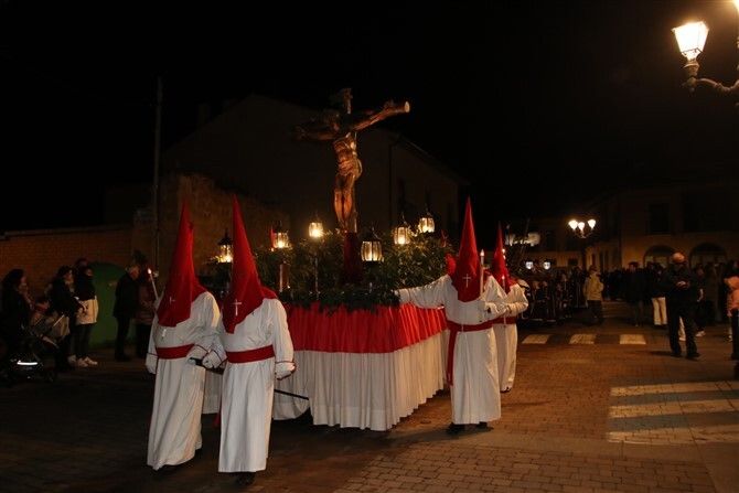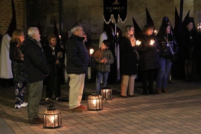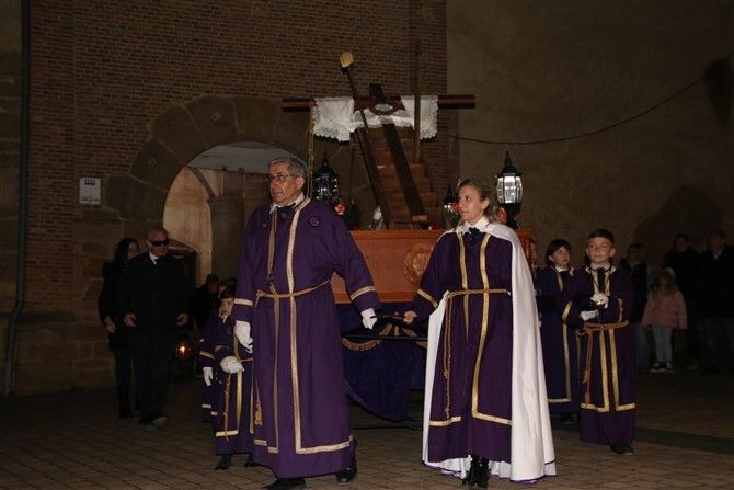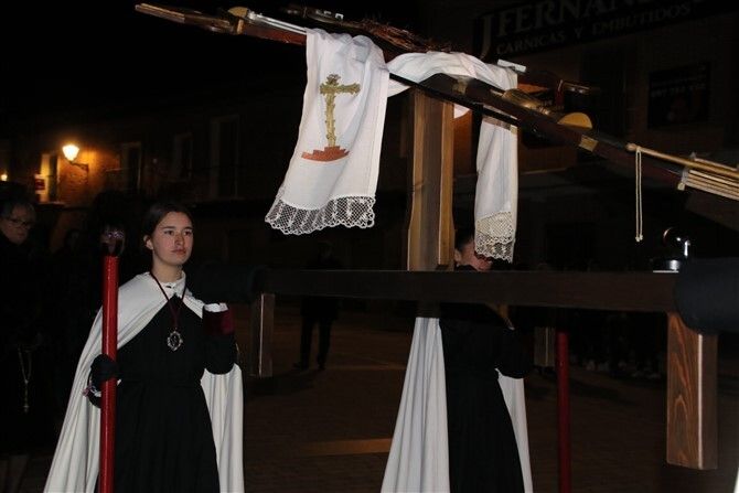 La Vera Cruz abre el camino de la procesión que sobrecoge por su silencio. Sus cofrades portan velas y, los más jóvenes, portan una cruz. La Manolas enlutadas son símbolo del dolor. Los más pequeños de la Cofradía de Jesús Nazareno empujan el paso de Los Atributos y los cofrades de San Blas procesionan al cristo crucificado conocido como el cristo de La Concha.