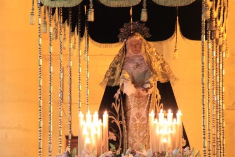 Este año en el Rosario de la Buena Muerte procesionó el Crucificado, Cristo de la Trinidad, pero por falta de braceros no pudo acompañar la Inmaculada, que hace las veces de Virgen Dolorosa.