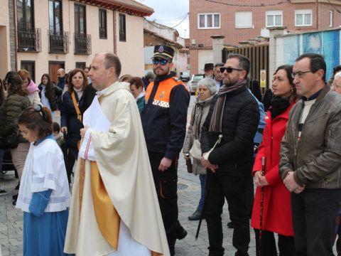 Al compás de la Banda de CCTT Agrupación musical de Nuestra Señora de los Dolores de León, abriendo el camino con la Cruz Penintencial por las calles de la localidad desde la iglesia Parroquial, Plaza Mayor, Plaza de la Leña, Calle de la Esperanza, Calle de la Higuera, Calle de los Diexmos, Calle Alonso Castrillo, Caño de los Cuatro Cantones, Calle Mayor, Calle de la Amargura, regresando a la Plaza Mayor y finalizando de nuevo en la Iglesia.