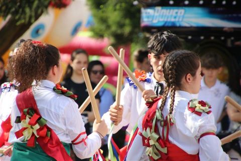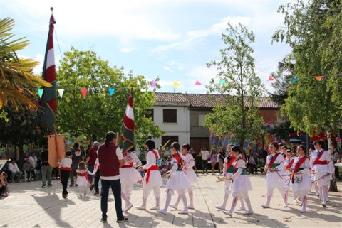 Tampoco faltó el pendón, símbolo del pueblo que lució con orgullo ante una plaza abarrotada. Mientras los danzantes ataviados con sus inmaculadas faldas almidonadas, cintas de colores y flores en la espalda preparaban para la danza.