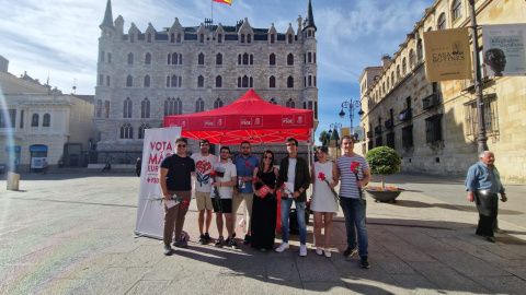 La secretaria de Organización del PSOE de León, Nuria Rubio, y Juventudes Socialistas de León llevó ayer a cabo una acción informativa este martes en la plaza de Botines de la capital leonesa para poner en valor el programa que el PSOE ha preparado de cara a las elecciones europeas, que se celebrarán el próximo domingo 9 de junio, en materia de juventud.