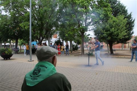 Con alegría y mucha ilusión Julió enciende siempre el primero de los cohetes y el último, el resto "que los disfrute el pueblo", ayer fueron muchos de los presentes quienes se animaron a "encender" la mecha.