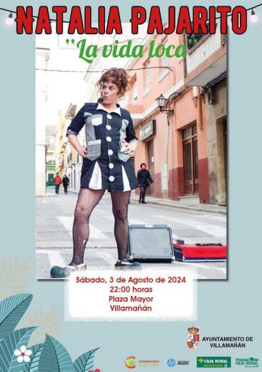 Este sábado 3 de agosto Villamañán acogerá el espectáculo "La vida loca" a cargo de Natalia Pajarito en la Plaza Mayor. La artista propone un espectáculo lleno de risas dirigido a toda la familia que trata sobre una payasa muy divertida e impredecible que busca convertirse en una gran diva. Pajarito es una payasa que lleva más de diez años recorriendo teatros y calles dentro y fuera de la península.