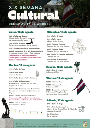 Cabreros del Río se prepara para celebrar su XIX Semana Cultural, que se llevará a cabo del 12 al 17 de agosto. Este evento anual, organizado por el Ayuntamiento de Cabreros del Río junto con varias asociaciones locales, promete una variedad de actividades para todas las edades, destacando la rica tradición y cultura de la región.