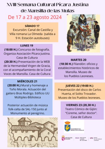 La XVIII Semana Cultural "Pícara Justina" de Mansilla de las Mulas es una oportunidad única para disfrutar de la rica oferta cultural de la localidad y conectar con sus tradiciones y patrimonio.