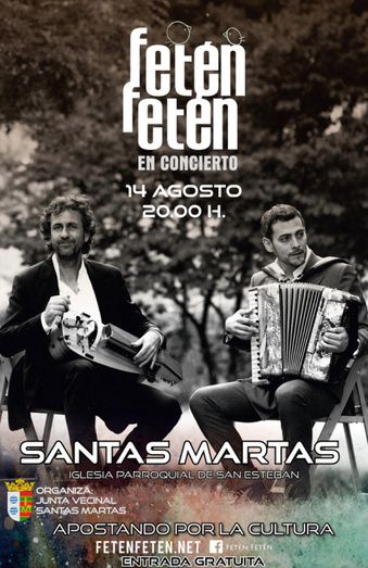 La Junta Vecinal de Santas Martas, en su firme compromiso con la cultura, invita a todos los vecinos y amantes de la música a disfrutar de esta experiencia única, donde el virtuosismo grupo de Fetén Fetén será el protagonista de una tarde inolvidable. La entrada es gratuita, así que no te lo pierdas y ven a vivir una noche mágica en la Iglesia Parroquial de San Esteban.