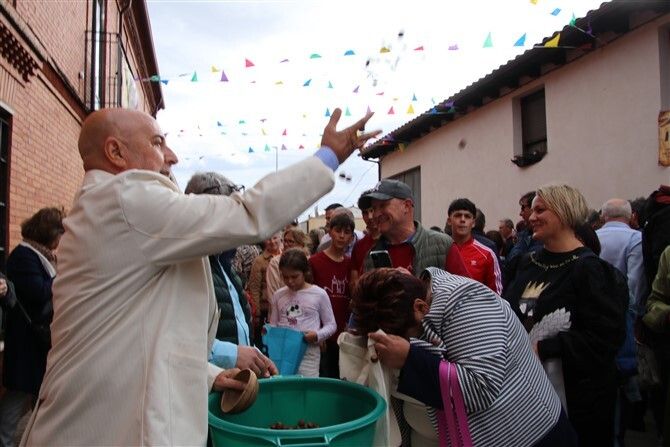 Una multitud se reunió enfrente de la casa del Mayordomo donde cayeron avellanas del cielo en forma de singular lluvia. Los hermanos cofrades recibieron las avellanas y el vino en una tradición que cuenta con más de 400 años de historia.