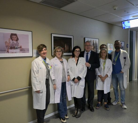 El gerente del CAULE, Alfonso Rodríguez-Hevia González, acompañado de su equipo directivo, y de la responsable del programa CAULE Cultural, la Dra. Silvia García, visitaron este miércoles la exposición ‘El teléfono escacharrado’, del colectivo Diafragma, que ha quedado instalada en el pasillo que da acceso a las consultas externas del Hospital Universitario de León, en la primera planta. El gerente ha destacado que, con esta nueva exposición, el CAULE sigue avanzando en su objetivo de acercar el arte a pacientes y trabajadores, humanizando al tiempo el recinto hospitalario.