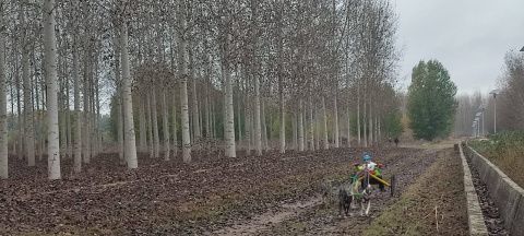 Desde primera hora de la mañana el entorno de la ribera del río Esla en Valencia de Don Juan se convirtió este jueves en un recorrido de mushers. Este apasionante deporte que une a corredores de diferentes modalidades con perros se puede disfrutar este fin de semana en Valencia de Don Juan.