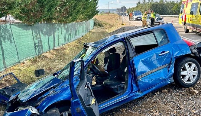 Sin víctimas mortales ni heridos de gravedad a pesar de la espectacularidad del coche. El accidente ha tenido lugar en la N-630 en el kilómetro 136 a las 11:25 horas. Dos turismos chocan y como consecuencia uno de ellos da varias vueltas de campana. En este vehículgo viajaba una pareja, la mujer tuvo que ser excarcelada.
