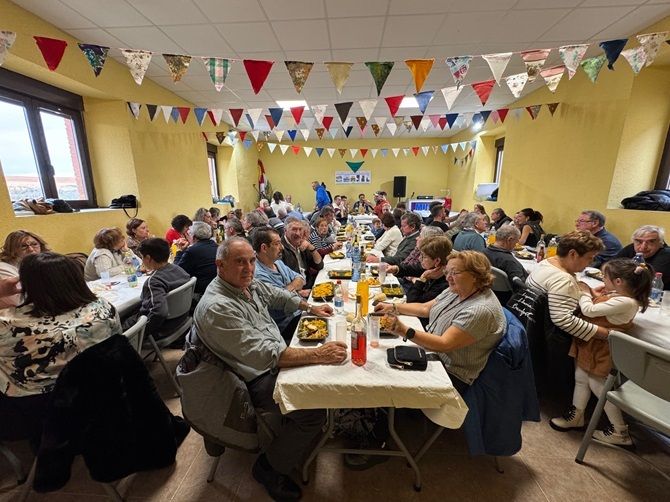 A las 14:30 h, el salón de plenos del Ayuntamiento del pueblo se llenó de vida con una comida popular. El menú, compuesto por chorizo al vino, paella, pan, bebida, postre y café, fue disfrutado por todos los asistentes, que compartieron una sobremesa llena de risas y buenos momentos.