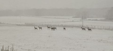 El maravilloso espectáculo invernal de los ciervos corriendo por la nieve