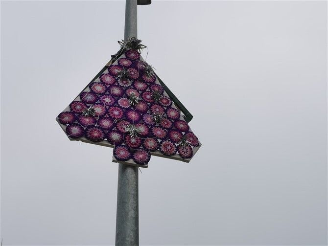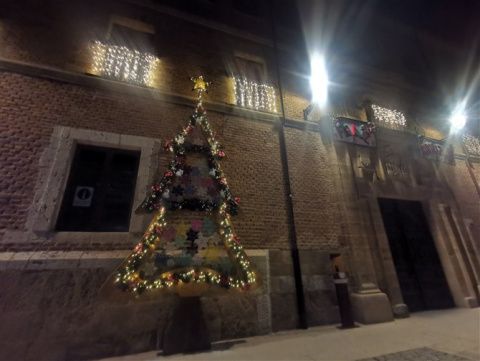 La magia navideña ha cobrado vida en Valderas gracias al esfuerzo y dedicación de algunas de sus vecinas. Un año más, la localidad ha sido adornada con una impresionante decoración que incluye dos árboles navideños, uno de los cuales es completamente nuevo y se erige majestuoso en la fachada del antiguo seminario. Con una altura de siete metros, este árbol destaca no solo por su tamaño, sino también por su singularidad: está confeccionado mandalas tejidos a mano que rellenan un gran armazón de madera.