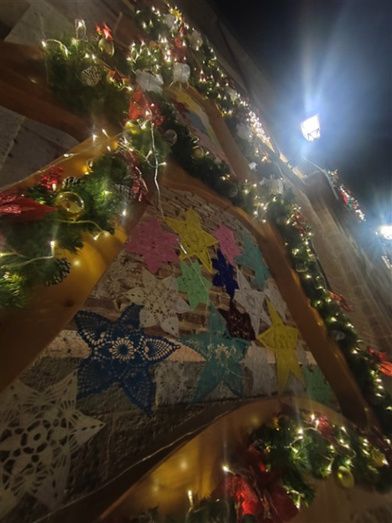 El grupo de ganchillo sorprende nuevamente con una decoración navideña artesanal, destacando un imponente árbol de 7 metros en la fachada del antiguo seminario.