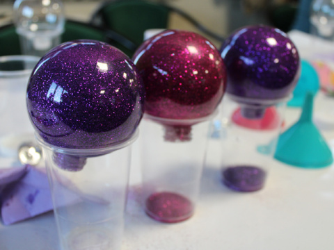 Comenzaron vertiendo la cola en el interior de la bola, a continuación, eligieron el color, rojo, verde, dorado, rosa, azul, naranja, fueron algunos de los colores que los vecinos de Campazas hicieron su bola navideña.
