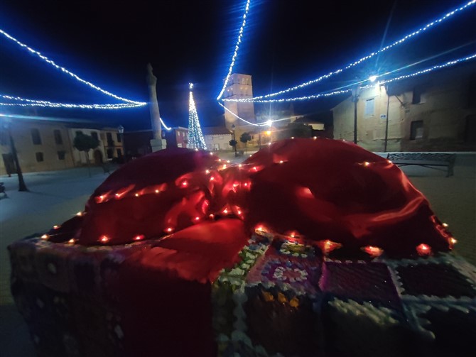 En el centro del pueblo, junto a la "mona" de Villademor un regalo gigante envuelto en cientos de piezas de crochet realizados con cariño por muchas vecinas del pueblo. l eEste impresionante adorno no solo es un punto focal para fotografías, sino también un recordatorio visual del amor y unión que caracterizan a esta época del año. Junto a él un gran photocall enmarca uno de los puntos más hermosos del pueblo, la "mona" y la imponente iglesia de la localidad.