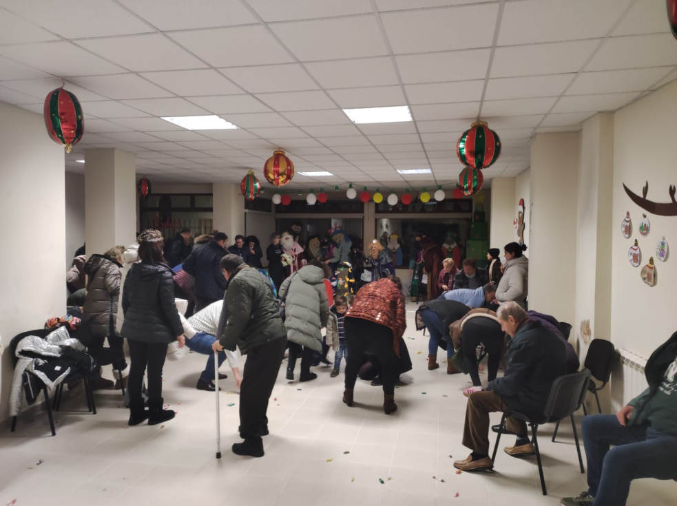 La cabalgata de los Reyes en Villafer tuvo que ser suspendida por la lluvia. Pero Melchor, Gaspar y Baltasar compartieron la tarde con pequeños y mayores del pueblo. A los pequeños se les entregó cucuruchos de chuches y para los mayores hubo roscón para todos.