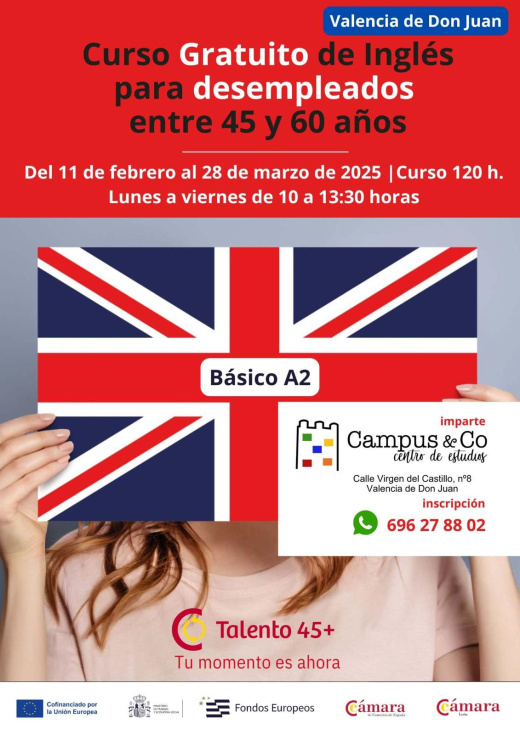 El centro de estudios Campus&Co en Valencia de Don Juan ofrece una oportunidad única para desempleados de entre 45 y 60 años. Se han habilitado 15 plazas limitadas para un curso gratuito de inglés, que incluye todos los materiales necesarios.