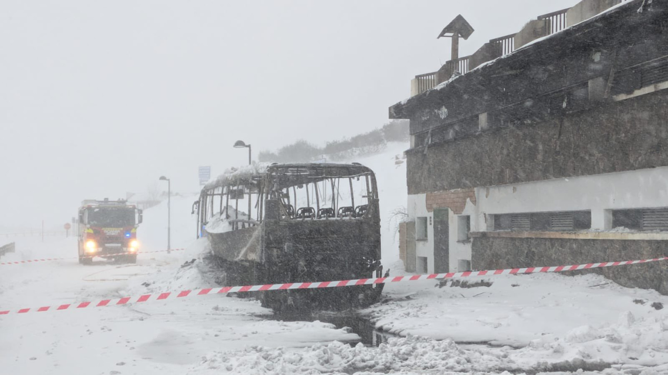 Con cámaras grabando las 24 horas del día no ha pasado desapercibido el incendio de un autobús en San Isidro.´El fuego fue grabado en directo por las cámaras de la estación. El vehículo estaba estacionado en el aparcamiento de la estación invernal.