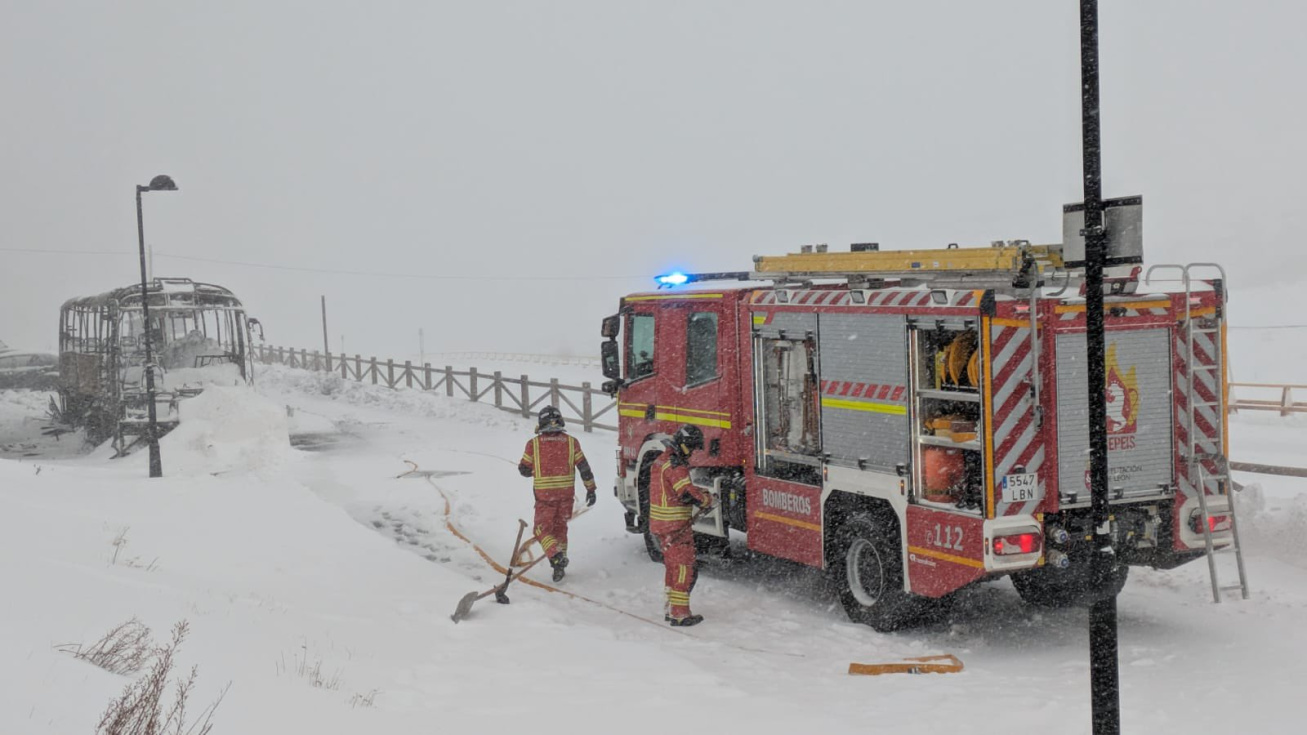 La situación, cuanto menos llamativa, en mitad de la nieve y con una gran nevada cayendo el autobús ardiendo. Aún fue más surrealista cuando una fresadora quitanieves fue la encargada de sofocar las llamas. El autobús quedó calcinado.