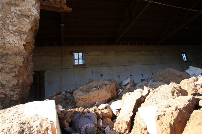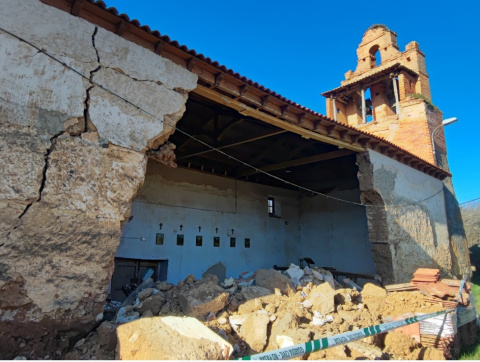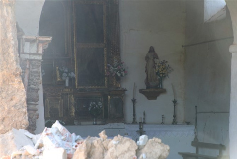 Un San Isidro roto entre los escombros es la dolorosa imagen a la que se han enfrentado los vecinos después del derrumbe que no han dudado 'turnarse' para proteger "lo poco que nos queda'. Así están los habitantes de este pueblo mientras esperan una actuación urgente para salbar la iglesia. La pared a punto de caerse y un retablo que intenta "aguantar" para no ceder.