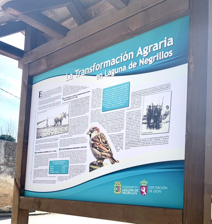 El Ayuntamiento de Laguna de Negrillos continúa impulsando el turismo, patrimonio y riqueza medioambiental del municipio. La última iniciativa que se ha materializado es la instalación de un nuevo panel de información medio ambiental en el reacondicionado parque del jardín.