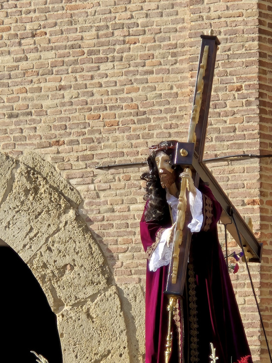 La cofradía de la Vera Cruz abre el camino que sigue la cofradía de Jesús Nazareno portando a su imagen titular, cierran la comitiva una virgen, vecinos y cofrades de la localidad.