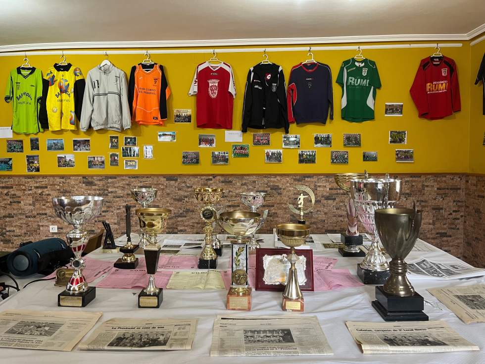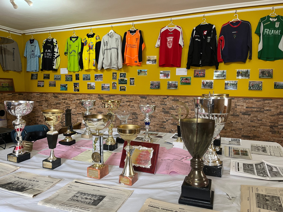 Este fin de semana pudo exponer al público un total de 26 trofeos, 18 camisetas (desde el año 80 hasta la actualidad), cerca de un centenar de fotos (la más antigua de 1963), recortes de periódico, fichas federativas, actas de los partidos...