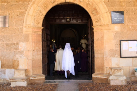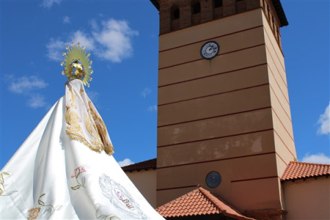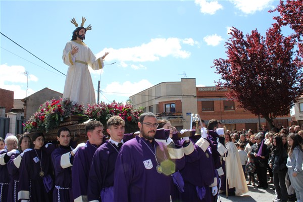 Este año, coincidiendo la fecha con el día 20 de abril comenzaba el acto de la procesión a las 11:45 horas desde la parroquia de San Juan Bautista con un nuevo itinerarario por las calles de la localidad, hasta llegar a la Plaza El Santísimo Sacramento para realizar el tradicional Encuentro y quitar el luto a la Virgen y descubrir sus rostros.