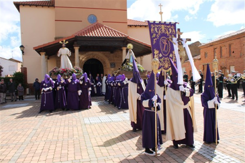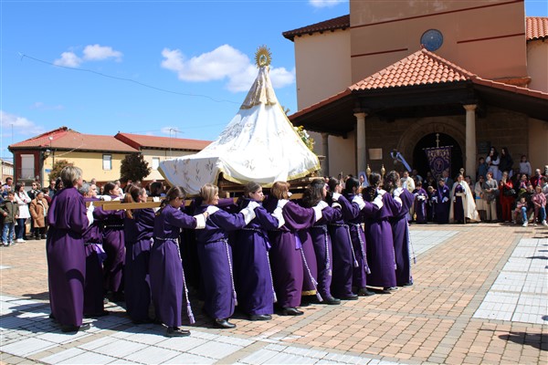 El Domingo de Resurrección se pueden ver los pasos del Cristo Resucitado de Miguel Bejarano, realizada en madera de cedro (Sevilla 1999) y La Virgen de la Soledad este año yendo al compás de la Banda de Cornetas y Tambores de La Pola.