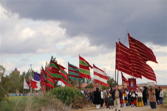 Este año la celebración además contó con un extraordinario desfile de pendones, casi una veintena de pendones de la comarca se unieron para rendir tributo a la patrona. Desde la iglesia de Cimanes recorrieron el trayecto a la ermita en una vistoso recorrido en el que las insiginias ondearon al viento (en algunas ocasiones bastante fuerte). Abriendo la comitivo el pendón de Cimanes -que fue recuperado hace un año-. También en la comitiva el de Villamandos, Campazas, el recién recuperado de Villaquejida, Laguna Dalga o Valencia de Don Juan, entre otros.