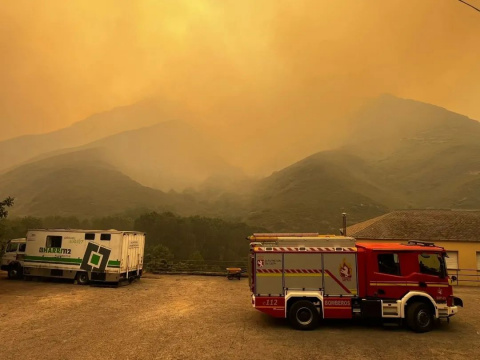 En una jornada muy dura en León en cuanto a incendios el Sur de León tampoco se libra. Desde las 15:30 horas de este domingo estuvieron trabajando para sofocar las llamas que llegaron a provocar incluso el corte de la N-630 en Benamariel. Han ardido 500 hectáreas.
