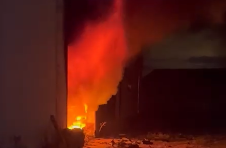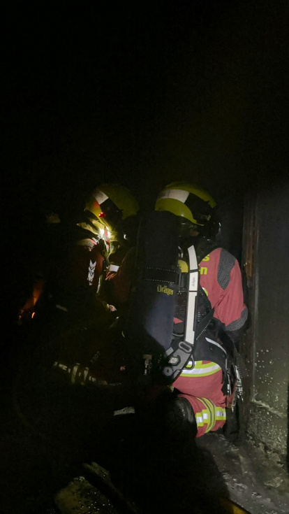 A la llegada de la dotación estaba la parte afectada envuelta en llamas con importante carga térmica y produciéndose explosiones.
