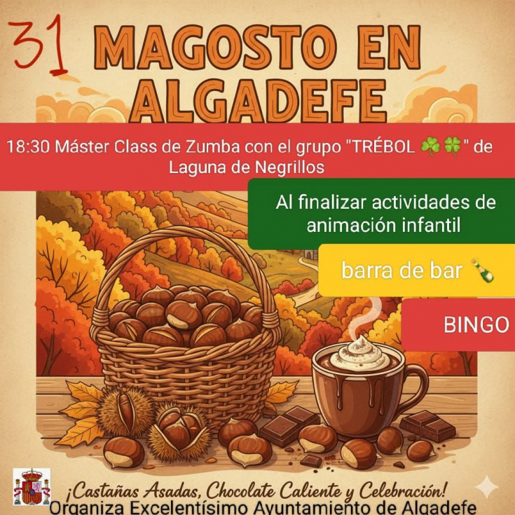 Los sustos y la tradición del magosto se unirán hoy en Algadefe. La localidad disfrutará esta tarde de una divertida tarde de Halloween en la que los pequeños podrán disfrutar de los sustos y la diversión (y muchas chuches) en una fiesta organizada por la AMPA.