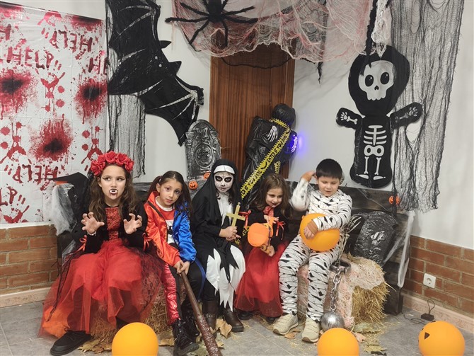 Más de una treintena de niños y niñas merendaron sandwiches y dulces, jugaron y se divirtieron ataviados de dráculas, brujas, calabazas y tambien se pudieron ver personajes de películas terroríficos.