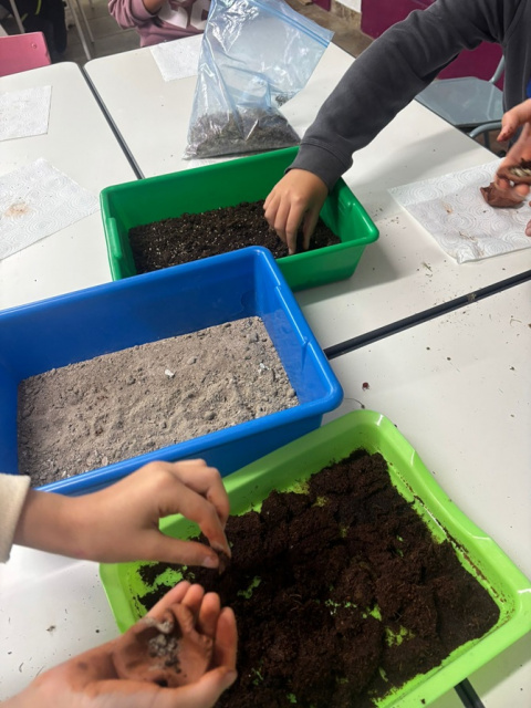 El alumnado, desde educación infantil (3 años) hasta sexto de primaria (12 años), participa en la creación de ‘bombas de semillas’, unas pequeñas bolas formadas por arcilla, agua, tierra, compost y fibra de coco que contienen semillas autóctonas recolectadas por voluntarios de Bierzo Renace.