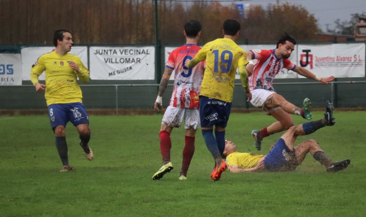 A partir de ahí, el guión fue claro. El Mansillés empujó, acumuló presencia en campo contrario y mantuvo el asedio a la portería rival durante toda la primera mitad. Eso sí, pese al dominio local, las ocasiones claras brillaron por su ausencia, en gran parte por el pésimo estado del terreno, que hacía imposible encadenar tres pases seguidos.
