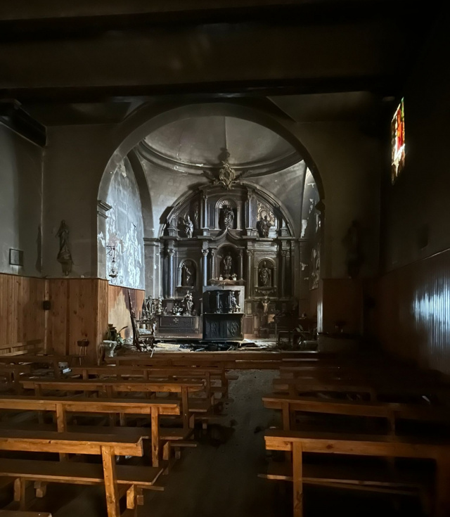 Con mucho olor a humo y muchas zonas chamuscadas y ennegrecidas.No obstante, demasiado poco para lo que podía haber sido en un templo cuyo interior está prácticamente lleno de madera.
