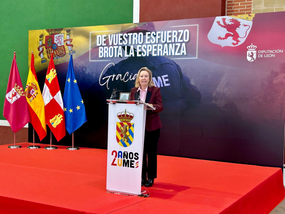 La secretaria de Estado de Defensa, Amparo Valcarce, ha tenido también un sentido recuerdo para los familiares y allegados de los tres muertos durante los incendios, así como de las personas heridas durante el fatídico mes de agosto. Además, ha destacado que “en representación del Gobierno de España y del Ministerio de Defensa es un honor muy especial acompañar a la Unidad Militar de Emergencias, a su V Batallón, que tiene su sede en San Andrés del Rabanedo, aquí en León”. “Este reconocimiento, además, coincide con el vigésimo aniversario de la creación de la UME y constituye una muestra de agradecimiento a todos los que han intervenido. Pero, sobre todo, tenemos que recordar lo que ha pasado este verano de 2025, porque este es un acto de celebración para la UME, pero también tiene que poner de relieve el valor que la ciudadanía concede a la actuación de las Fuerzas Armadas, cuando estas intervienen en apoyo, en ayuda, para estar al lado y servir a la población civil”, ha resaltado.
