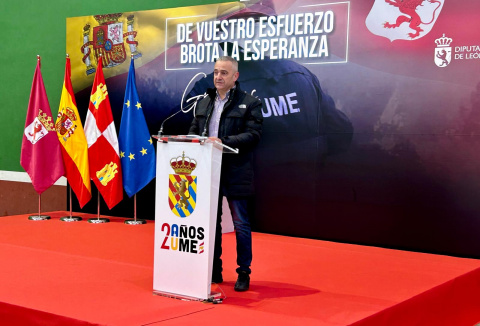 El presidente de la Diputación de León, Gerardo Álvarez Courel, ha encabezado el homenaje y ha agradecido públicamente la labor desarrollada por la UME, en un acto que ha servido también para conmemorar el 20 aniversario de la creación de este cuerpo especializado del Ejército de España.