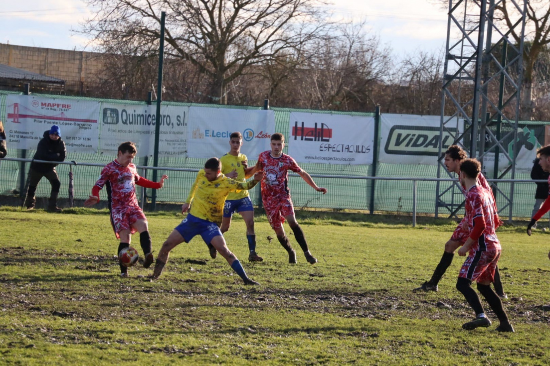 El Atlético Mansillés logró una valiosa victoria por 2-1 ante el Guijuelo en un encuentro marcado una vez más, por las difíciles condiciones del terreno de juego de La Caldera, que sigue siendo impracticable cada vez que la lluvia hace acto de presencia. El estado del campo condicionó por completo el desarrollo del partido y obligó a ambos conjuntos a adaptarse a un fútbol más directo y físico.