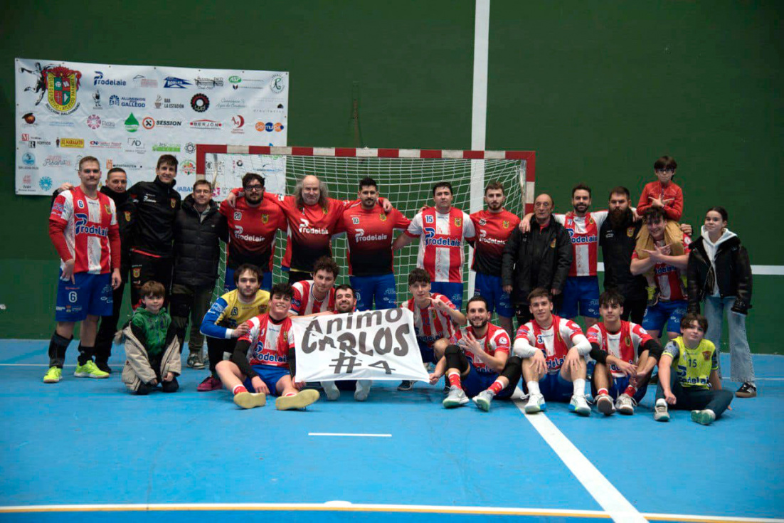 Por otro lado, el equipo paramés realizó una pancarta de apoyo a su jugador Carlos, que estará lejos de las pistas durante prácticamente todo el 2026 tras ser operado recientemente de una lesión de ligamento cruzado anterior que sufrió durante un partido en noviembre y al que sus compañeros le desearon una buena recuperación.