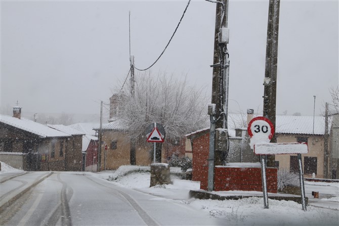 La comarca de Los Oteros, situada en el sur de la provincia de León, fue una de las zonas más afectadas por la reciente borrasca Ingrid, que dejó un importante manto blanco sobre sus tierras durante la jornada del viernes. Este fenómeno meteorológico, caracterizado por la llegada de aire frío y húmedo procedente del Atlántico, provocó intensas nevadas que sorprendieron tanto a los habitantes como a los visitantes de la región. En algunos momentos del día, la ventisca alcanzó tal intensidad que redujo notablemente la visibilidad y cubrió por completo la carretera de acceso al pueblo, dificultando el tránsito y obligando a extremar las precauciones a quienes se aventuraron a circular por ella.