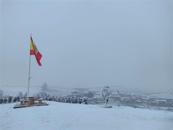 Fáfilas, conocido por sus icónicas puestas de sol y el emblemático mirador que cuenta con un bonito ‘Infinito’, se presentó este miércoles como un escenario sacado directamente de la película Frozen. Este mirador, uno de los mejores puntos para contemplar las vastas panorámicas del sur leonés, lucía cubierto por una capa nívea que potencia aún más su majestuosidad y serenidad.